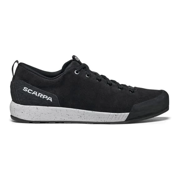 Scarpa Spirit Evo shoes with 90% of the materials used with ECO characteristics, reinforce Scarpa’s ongoing commitment to sustainability. Representing the spirit of climbers and adventures everywhere, with Spirit Evo you feel at home on the city streets. The suede is made of recycled EVOLO, reducing CO2 emissions and the use of water and chemicals. A lace-to-toe closure system is adaptable at the top, whether you want to adjust it for a quick bouldering session or pull it back for more casual brewpub use, and it fits a variety of foot shapes. The upper is finished with a recycled rubber toe cap for extra protection. The dual-density eco-friendly midsole provides a well-cushioned ride and plenty of support for long days on your feet. The outsole features exclusive SuperGum Eco rubber for added friction and traction, and is very durable to stand up to the street or slab.